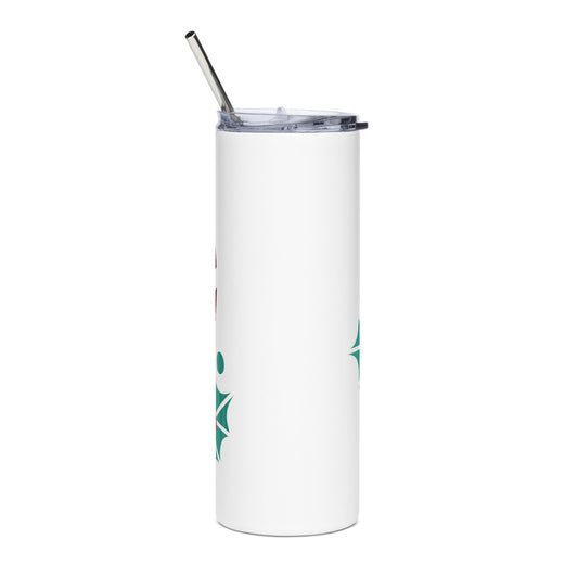Wine tumbler with retro camper van carrying a Christmas Tree